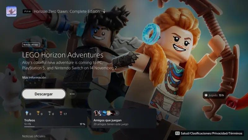 Y no para ahí, porque en Horizon: Forbidden West en lugar de esas vibrantes imágenes del mundo de Aloy, lo que te encontrarás es una publicidad de LEGO Horizon Adventures. Es casi como si Sony hubiera pensado: "¿Qué puede hacer que tu experiencia de juego sea mejor? ¡Más anuncios!".